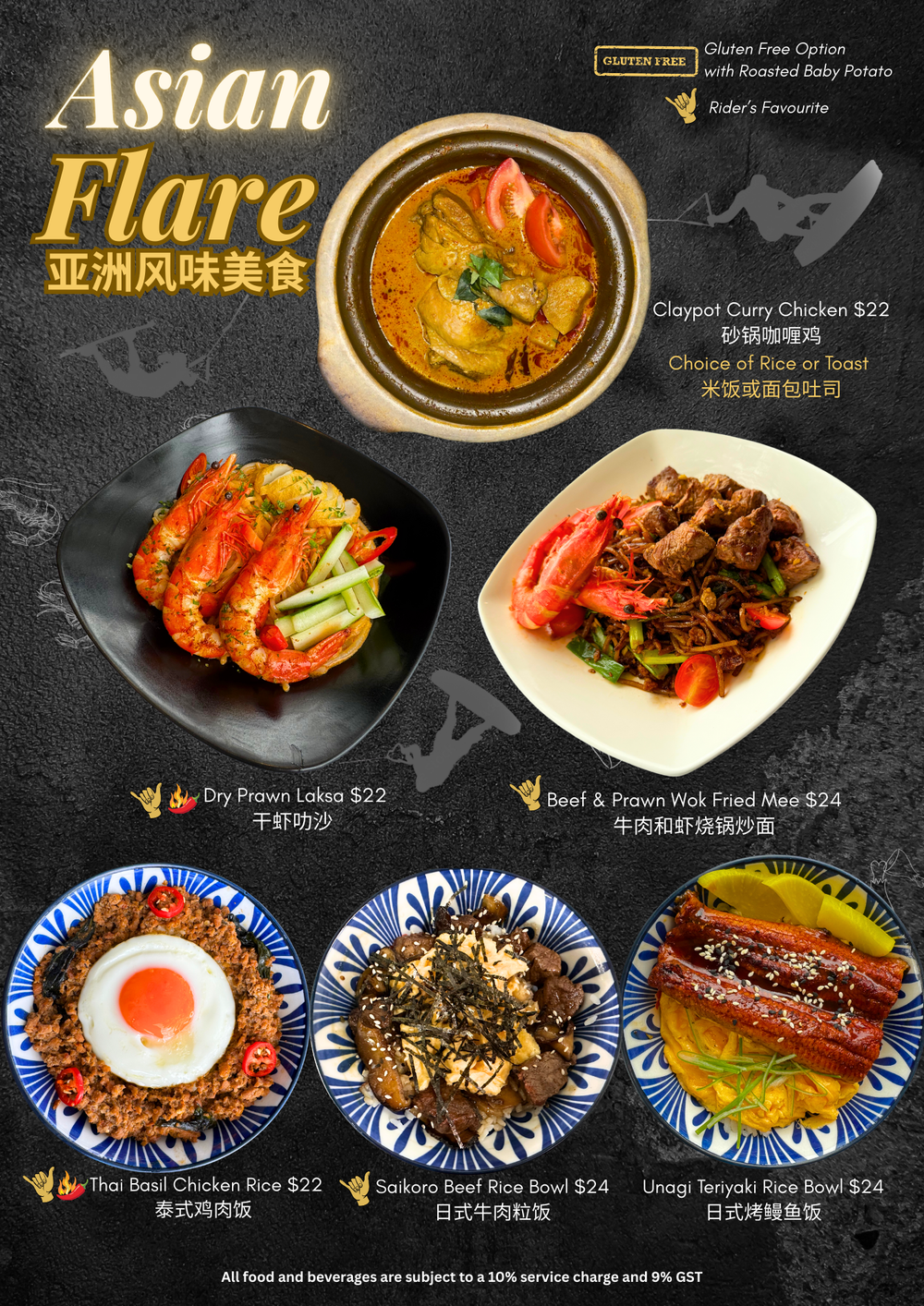 Bold Asian flavours, comfort classics, and rider favourites — from fragrant claypot curry to wok-fried noodles and hearty rice bowls. Big flavours, zero compromise.