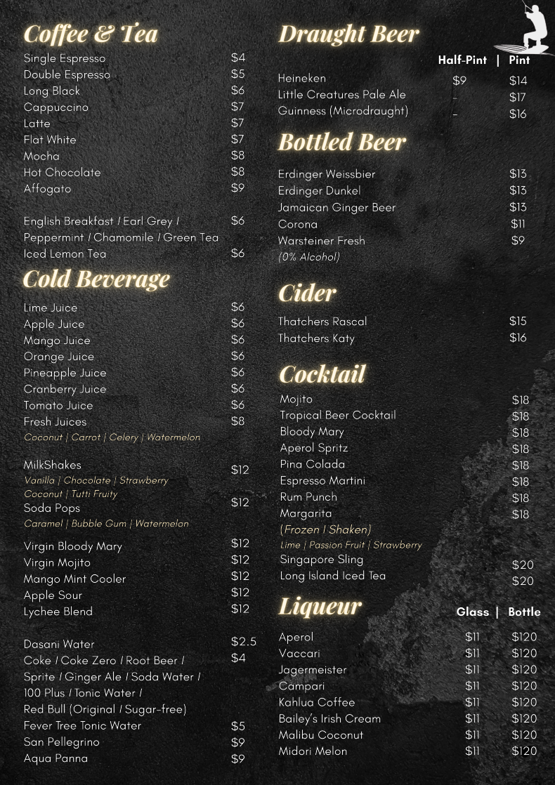 From freshly brewed coffee and icy cold juices to craft beers, signature cocktails, and premium pours — there’s always something perfect in hand after a ride!