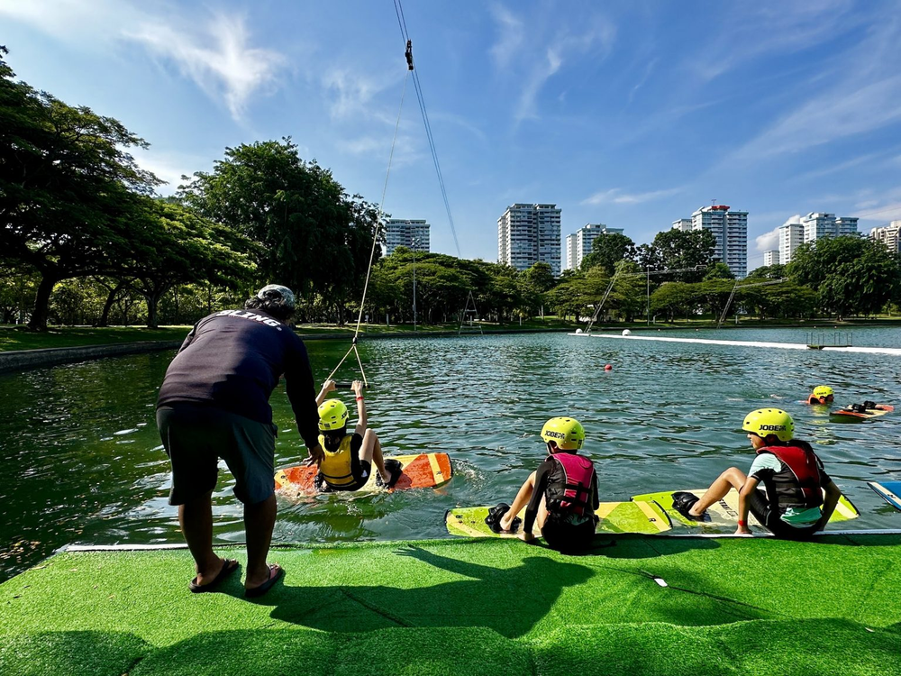 The Park features two straight-line systems. System A (60 meters) is designed for complete beginners, offering wakeboarding lessons led by our experienced instructors.