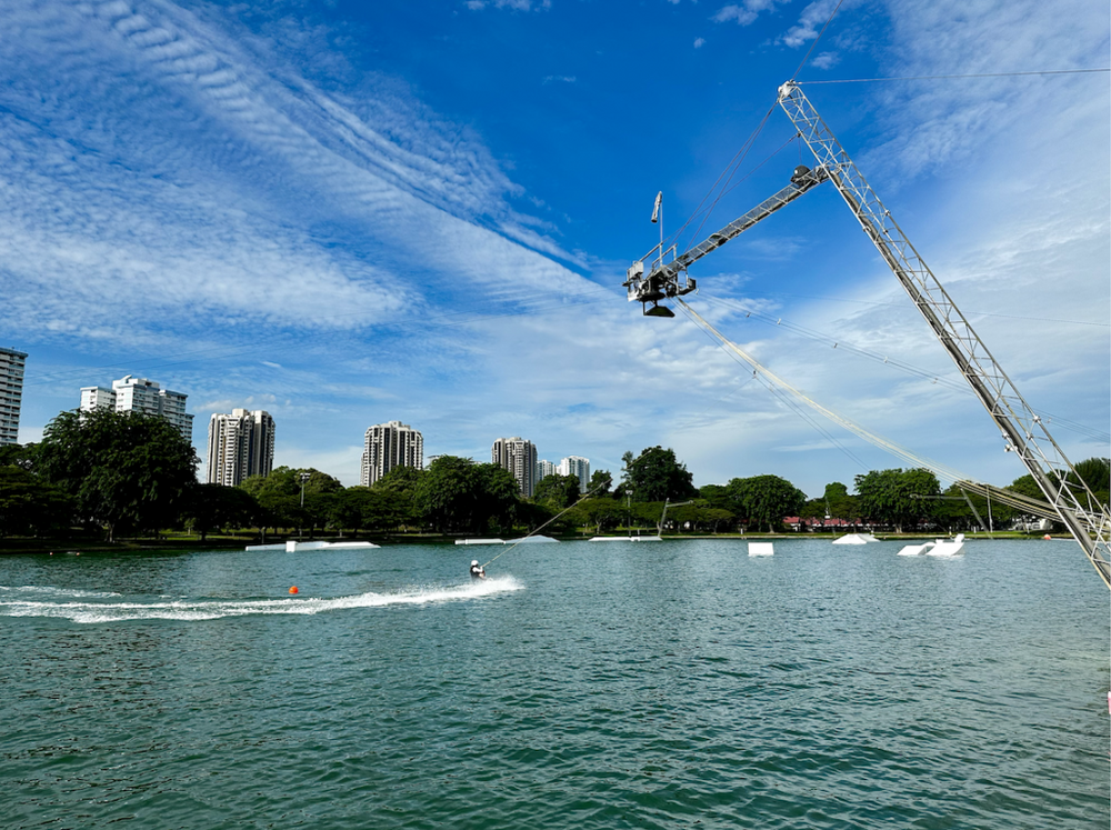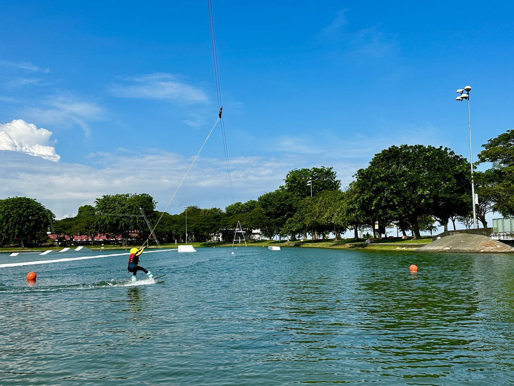 At the centre of the lagoon sits the highlight of Singapore Wake Park — our Full Size Cable System C (535 m). Featuring six towers and a continuous cable with six evenly spaced carriers, the system is highly efficient and reliable, delivering consistent tension and smooth, controlled rides.