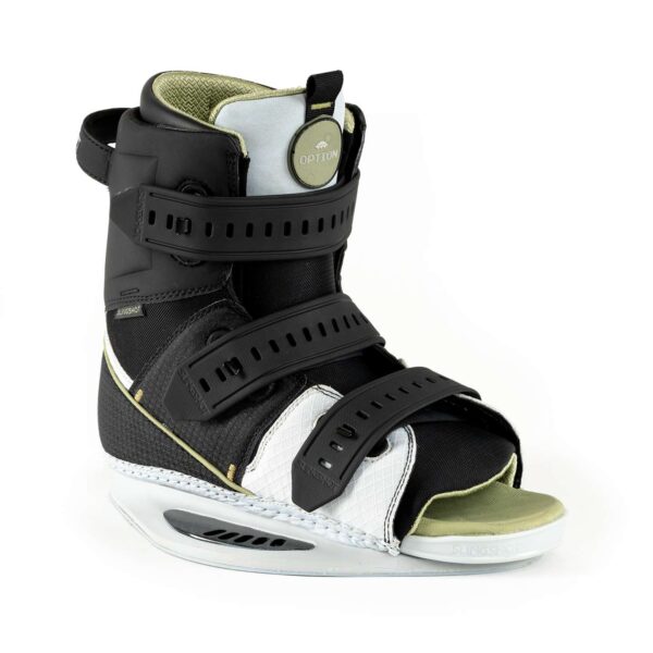 The Option EverShred wakeboard boots are the highest-performance open-toe wake boots on the market. Built to accommodate a broader range of shoe sizes than our closed-toe boots, the Option EverShred is an excellent choice for sharing amongst a family or group of wakeboarders. Modeled after our classic KTV boot with a simplified mounting plate and open toe, you won’t find a more comfortable or higher performing open toe wakeboard boot.
