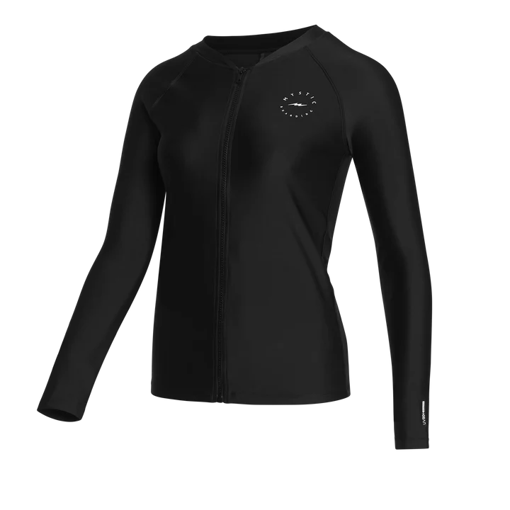 The Jayde combines protection and style in a premium zip-up rash vest with an all-black design. The Jayde offers UV protection of 50+, allowing you to enjoy your session without worrying about harmful sun rays.